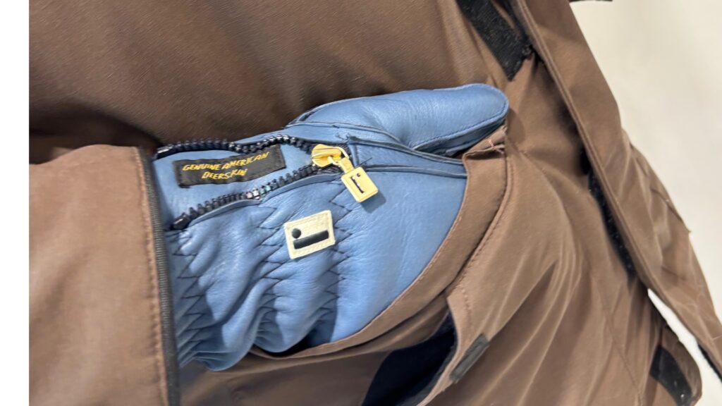 L’esterno dei guanti è in pelle di cervo trattata per essere idrorepellente. Si tratta di una scelta tecnica prima ancora che estetica: la pelle di cervo è tra le più resistenti e adattive disponibili per la guanteria di qualità. Offre una morbidezza naturale che si accentua con il tempo, adeguandosi progressivamente alla morfologia della mano, e una resistenza meccanica che regge senza difficoltà alle sollecitazioni tipiche dello sci. La trattazione idrorepellente garantisce protezione affidabile contro la neve e l’umidità, conservando al contempo la sensibilità necessaria per una presa sicura su bastoncini e attrezzatura.